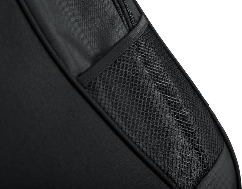 J'ai apprécié la solide poignée sur la partie latérale, les renforts sur les zones de frottement réguliers, les petits filets de rangement devant et sur le côté, les lanières sur les fermetures éclairs et le petit clip pour médiators de secours bien pratique.
