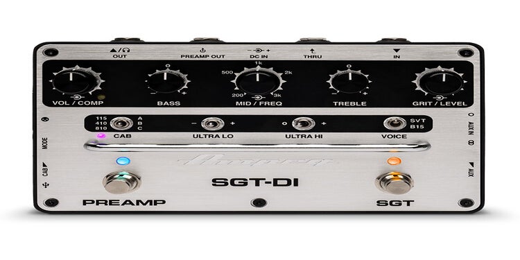 Le préampli et la boîte de direct SGT-DI vous offre un équipement complet dans une seule pédale compacte et performante. Il intègre un circuit d'overdrive, reproduisant fidèlement les sons emblématiques Ampeg SVT et B15 qui ont fait l'histoire de la musique. Il propose également un égaliseur 3 bandes polyvalent avec médiums réglables pour un contrôle précis de votre son, un circuit sophistiqué, des commutateurs Ultra-Hi et Ultra-Lo 3 voies pour encore plus de flexibilité, ainsi qu'un compresseur variable et une section auxiliaire/casque qui vous permettront d'apprécier une expérience sonore sur mesure, que ce soit sur scène ou en répétition.