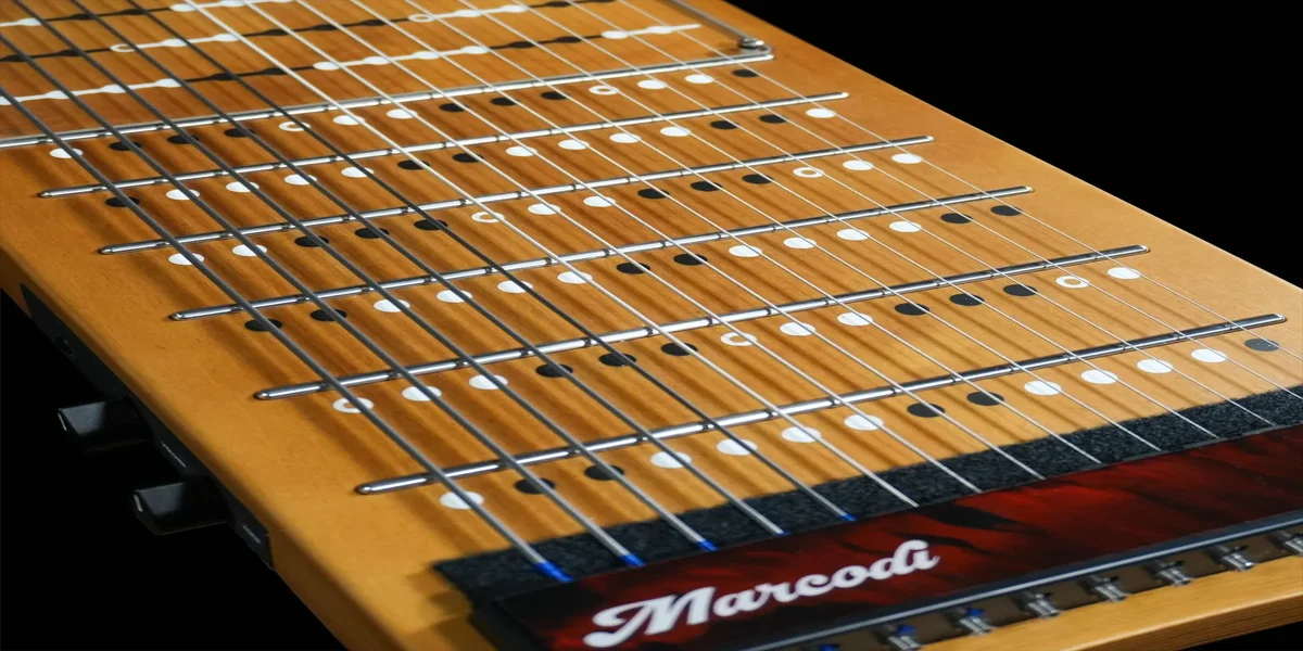 La grande idée du Harpejji est de fusionner la logique d'un clavier de piano avec la technique de jeu et la sonorité d'un instrument à cordes.