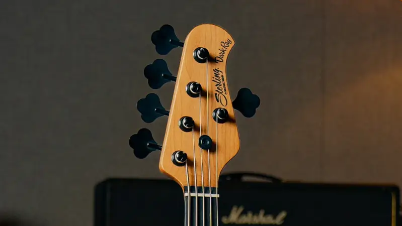 La DarkRay 5 cordes, un modèle StingRay, innove de par sa collaboration avec Darkglass Electronics. Le préampli actif 2 bandes Darkglass personnalisé offre trois modes : Clean (préampli uniquement), Alpha (distorsion) et Omega (fuzz), tous accessibles sans pédalier. Basculez entre ces circuits sans effort grâce à un anneau LED à code couleur et un sélecteur à 3 voies.