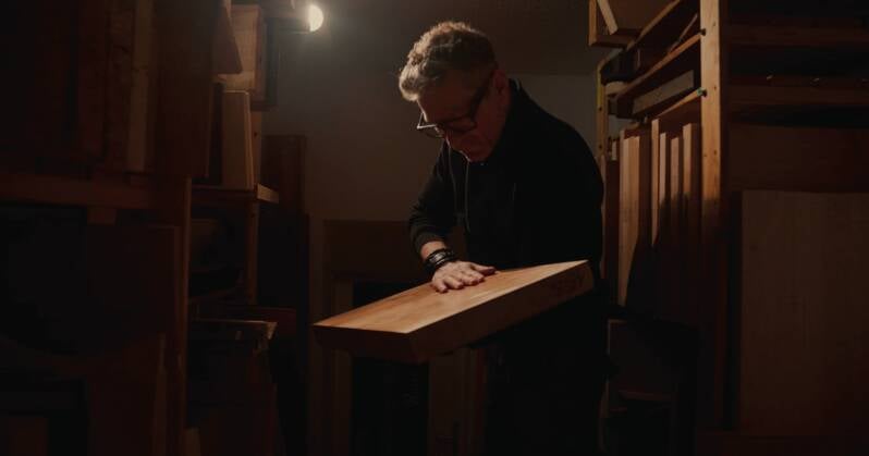Il travaille également avec des bois rares et fascinants, comme le chêne des marais, un matériau exceptionnellement précieux et chargé d’histoire, qui peut être vieux de 9 000 ans, pour conférer à ses instruments une qualité intemporelle et unique.