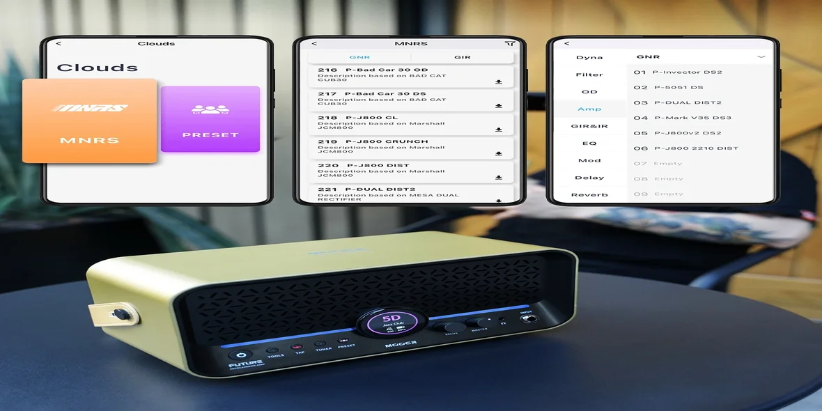 - Application iAMP dédiée pour l'édition complète des effets, le chargement des sons vers et depuis le MOOER Cloud et les mises à jour du firmware
