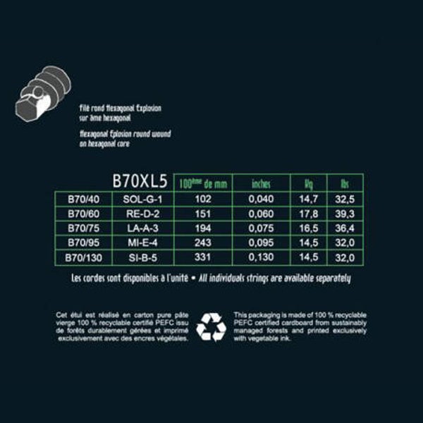 ·Les cordes pour guitare basse Hexagonal Explosion sont filées métal et plaquées nickel sur une âme hexagonale. Elles optimisent au maximum les qualités spécifiques du son et du feeling de l’âme hexagonale : réponse précise, projection rapide et puissance du son.